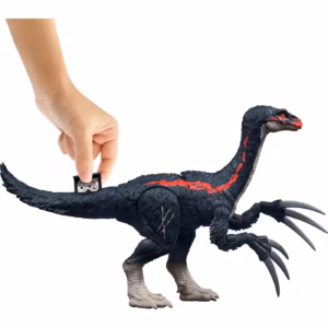 Kaos mishngrënës! Figura e Jurassic World Therizinosaurus është e saktë për përmbajtjen, me veçori sulmi dhe zëri.